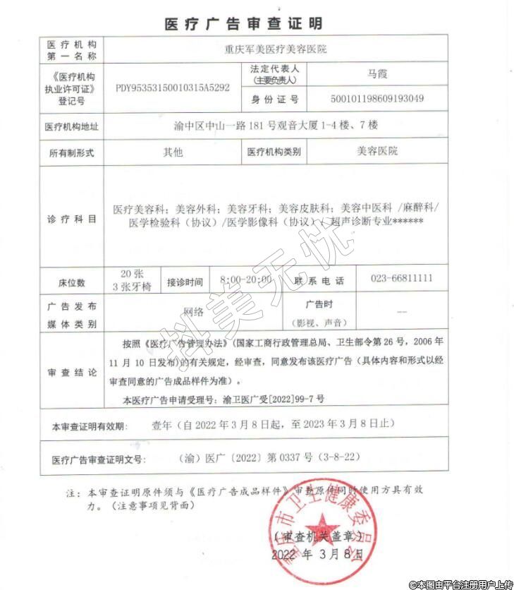 醫(yī)療機構(gòu)名稱:重慶軍美醫(yī)療美容醫(yī)院