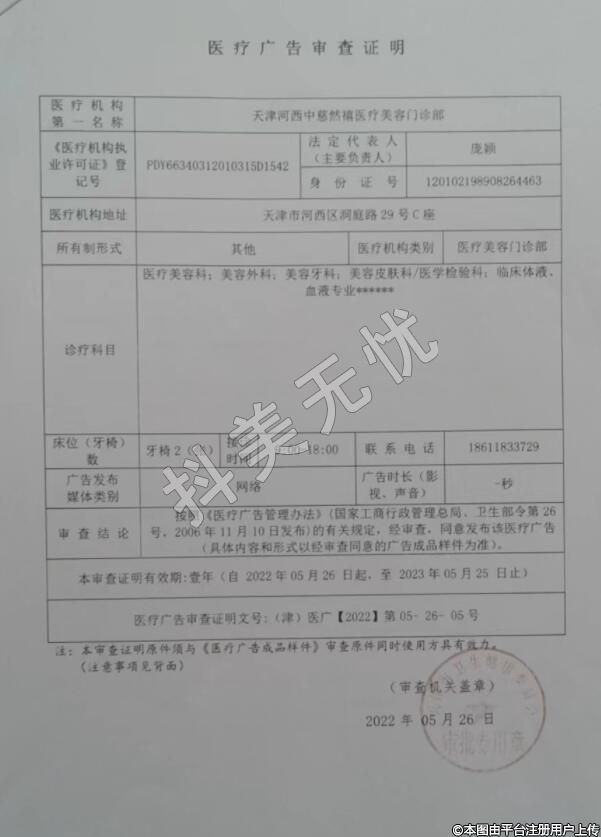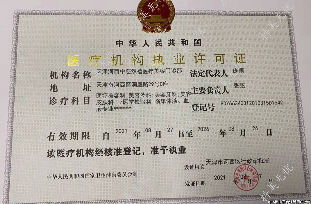 機構(gòu)名稱:天津河西中慈然禧醫(yī)療美容門診部