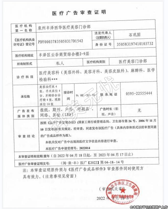 機(jī)構(gòu)名稱:泉州豐澤西華醫(yī)療美容門(mén)診部