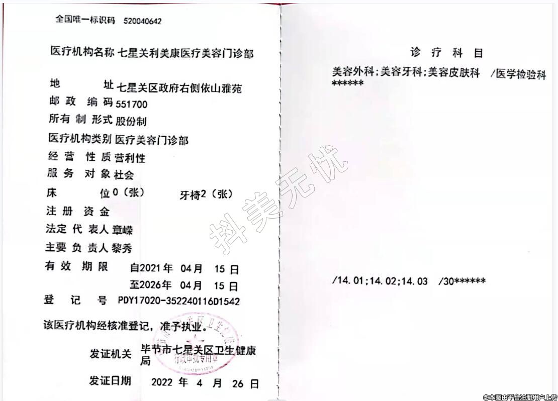 機構(gòu)名稱:七星關(guān)利美康醫(yī)療美容門診部