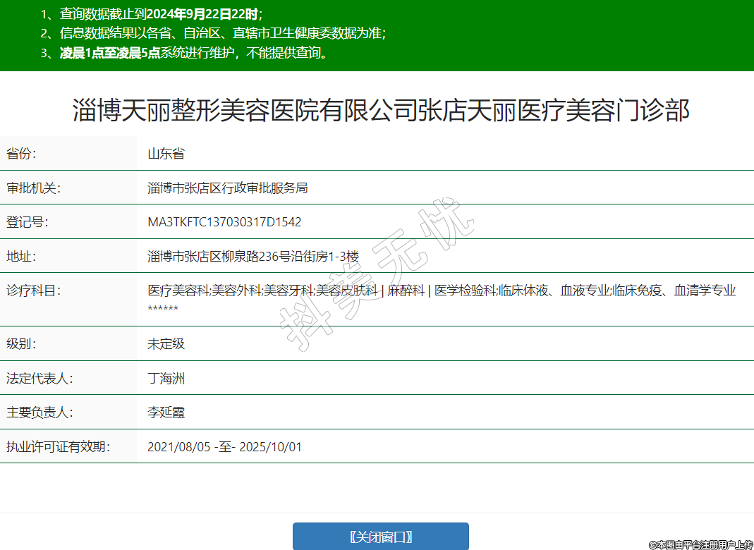 醫(yī)療機(jī)構(gòu)名稱:淄博天麗整形美容醫(yī)院有限公司張店天麗醫(yī)療美容門診部