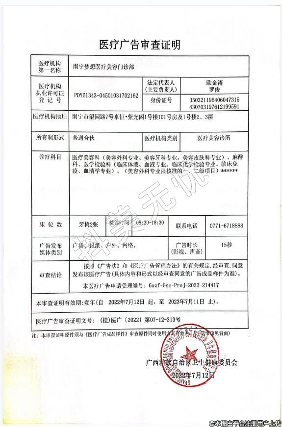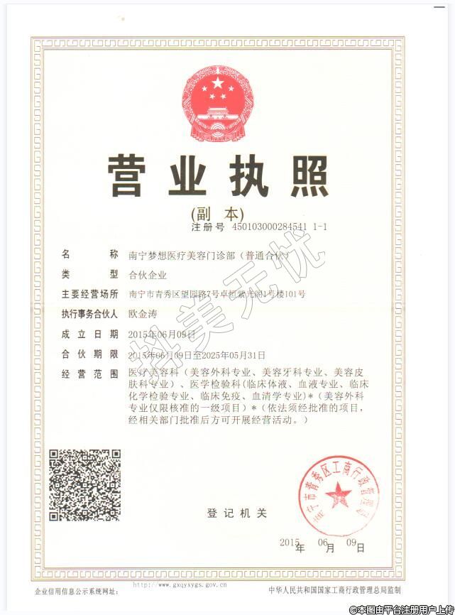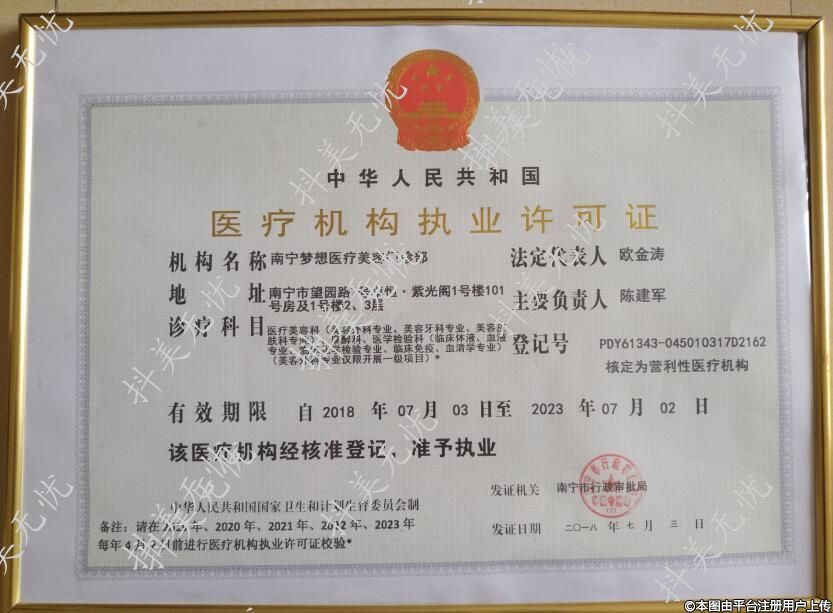 機構名稱:南寧夢想醫(yī)療美容門診部