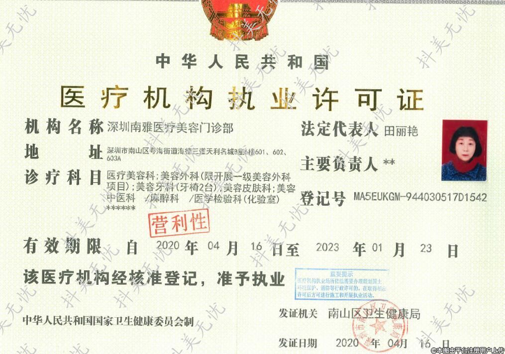 機構名稱:深圳南雅醫(yī)療美容門診部