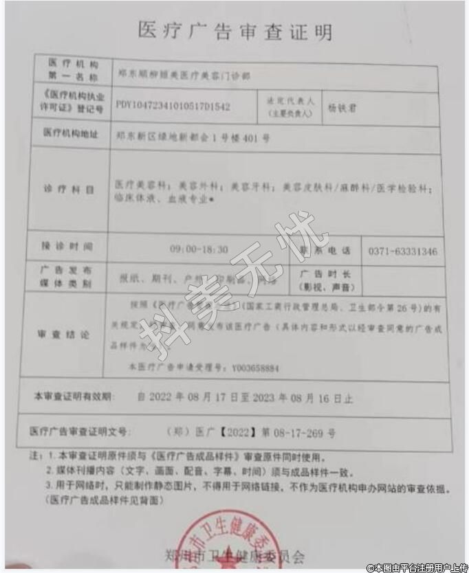 診療科目:醫(yī)療美容科;美容外科;美容牙科;美容皮膚科/麻醉科/醫(yī)學(xué)檢驗(yàn)科;臨床體液、血液專業(yè)******