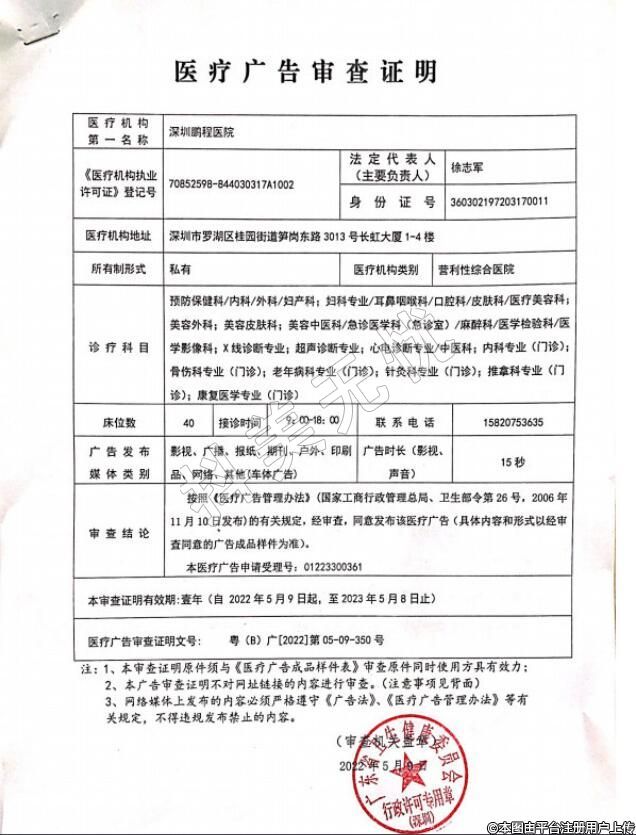 發(fā)證機關(guān):深圳市衛(wèi)生健康委員會