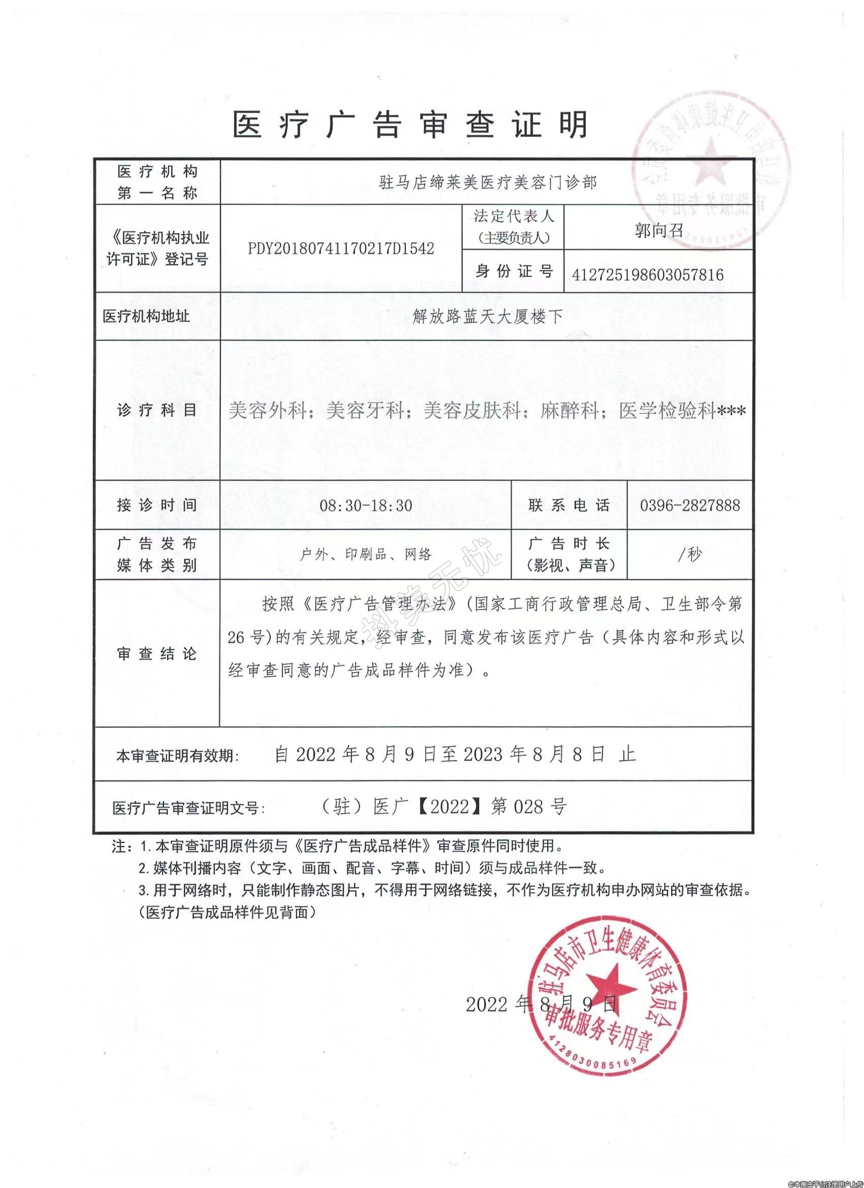 機構(gòu)名稱:駐馬店締萊美醫(yī)療美容門診部