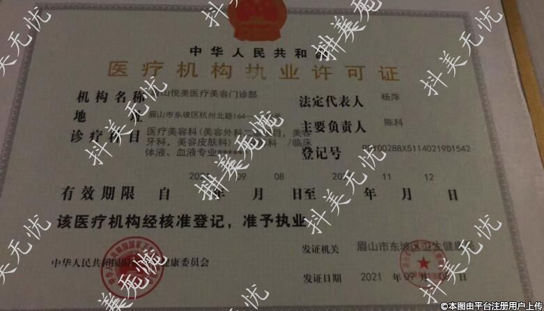 機構(gòu)名稱:眉山悅美醫(yī)療美容門診部