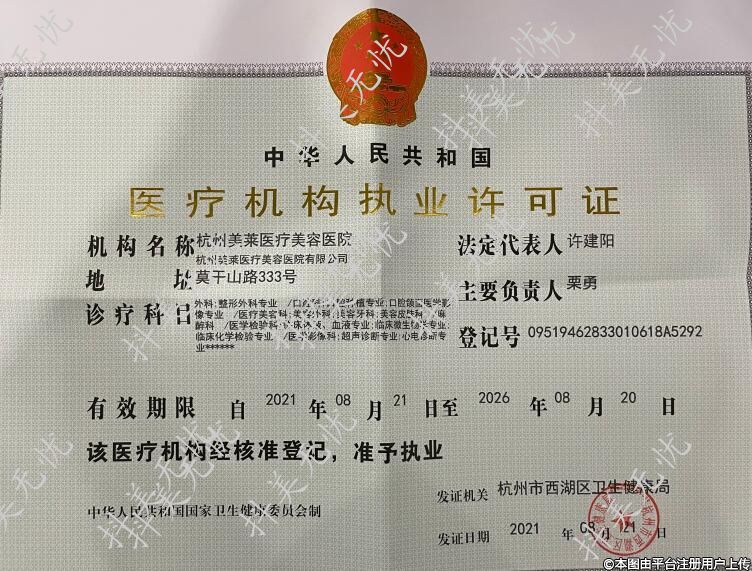 機構(gòu)名稱:杭州美萊醫(yī)療美容醫(yī)院 杭州美萊醫(yī)療美容醫(yī)院有限公司