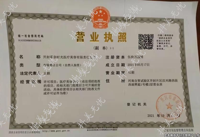 機(jī)構(gòu)名稱:開(kāi)封莫奈時(shí)光醫(yī)療美容有限責(zé)任公司