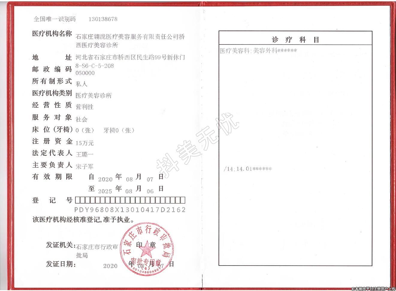 醫(yī)療機(jī)構(gòu)名稱:石家莊翎瀧醫(yī)療美容服務(wù)有限責(zé)任公司橋西醫(yī)療美容診所