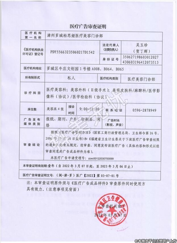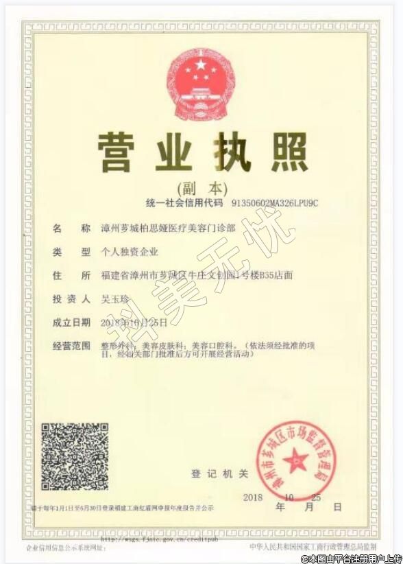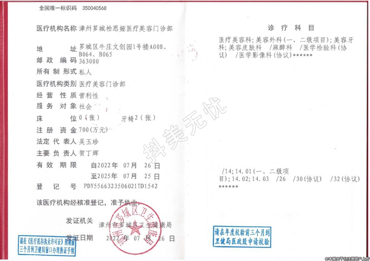 醫(yī)療機(jī)構(gòu)名稱:漳州薌城柏思婭醫(yī)療美容門診部