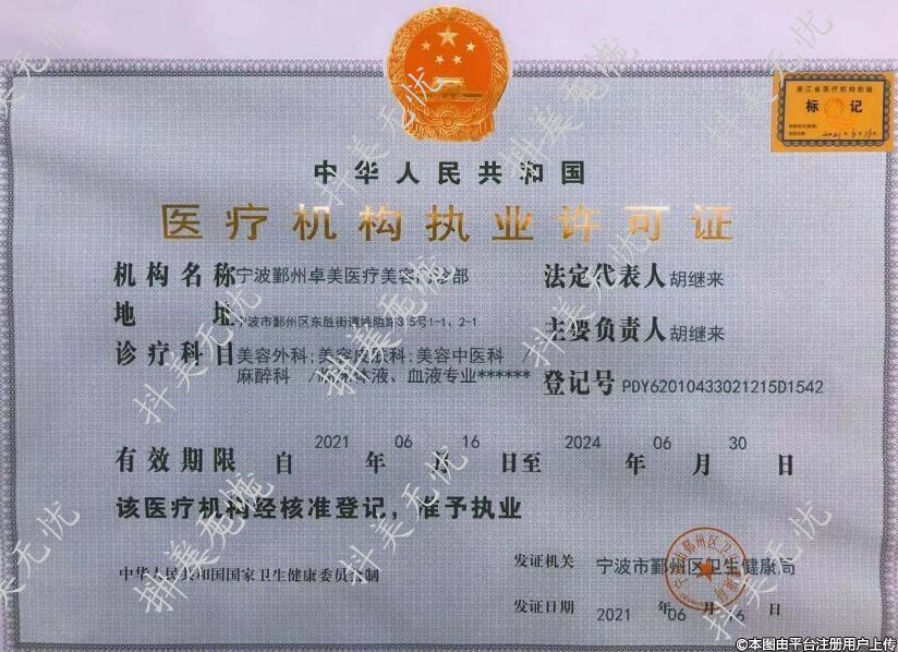 機構名稱:寧波鄞州卓美醫(yī)療美容門診部