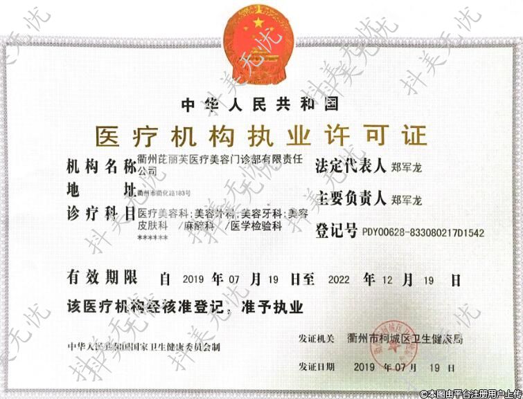 機(jī)構(gòu)名稱:衢州芘麗芙醫(yī)療美容門診部有限責(zé)任公司