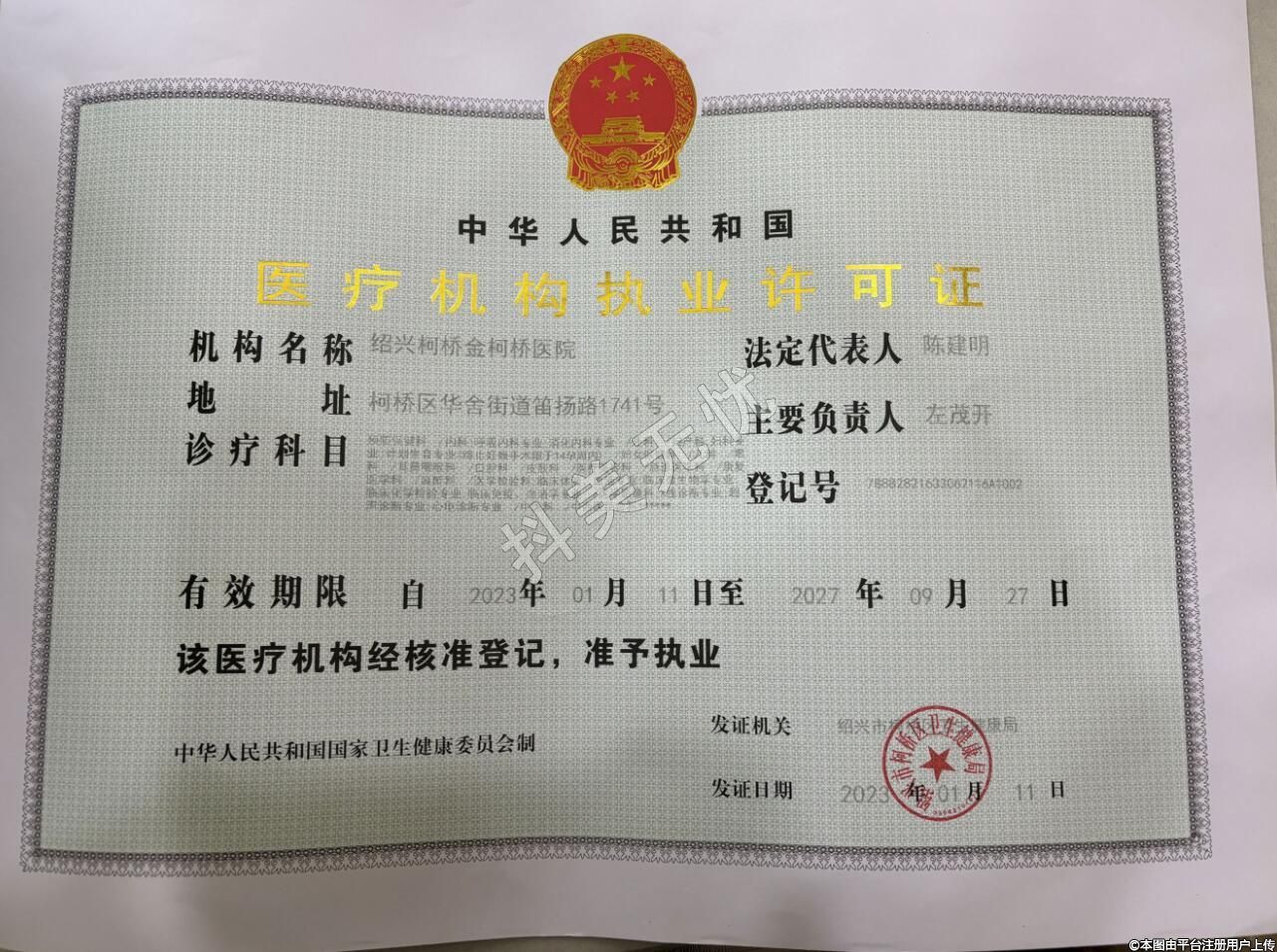 發(fā)證機(jī)關(guān):紹興市柯橋區(qū)衛(wèi)生和計(jì)劃生育局