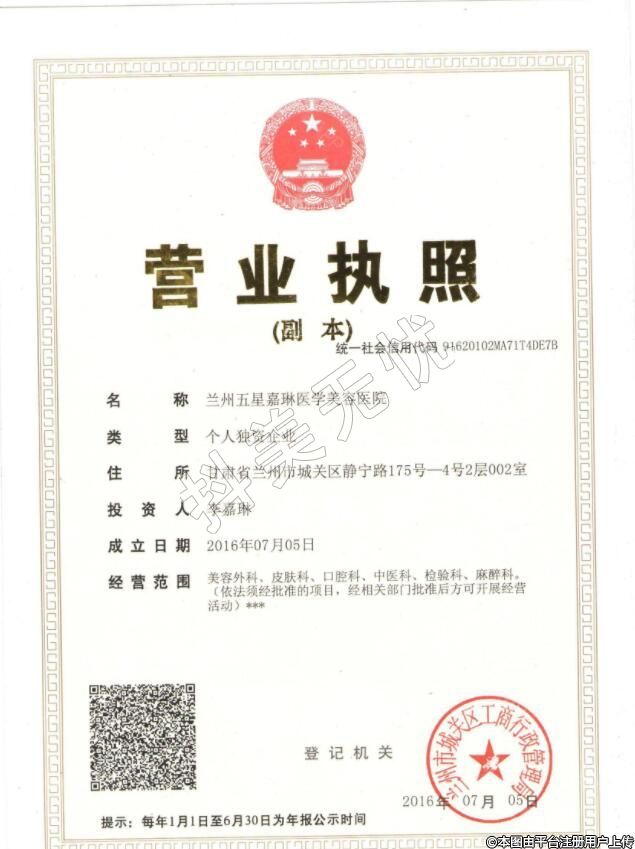 機(jī)構(gòu)名稱:蘭州五星嘉琳醫(yī)學(xué)美容醫(yī)院
