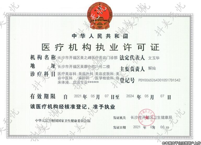 機(jī)構(gòu)名稱(chēng):長(zhǎng)沙市開(kāi)福區(qū)美之峰醫(yī)療美容門(mén)診部