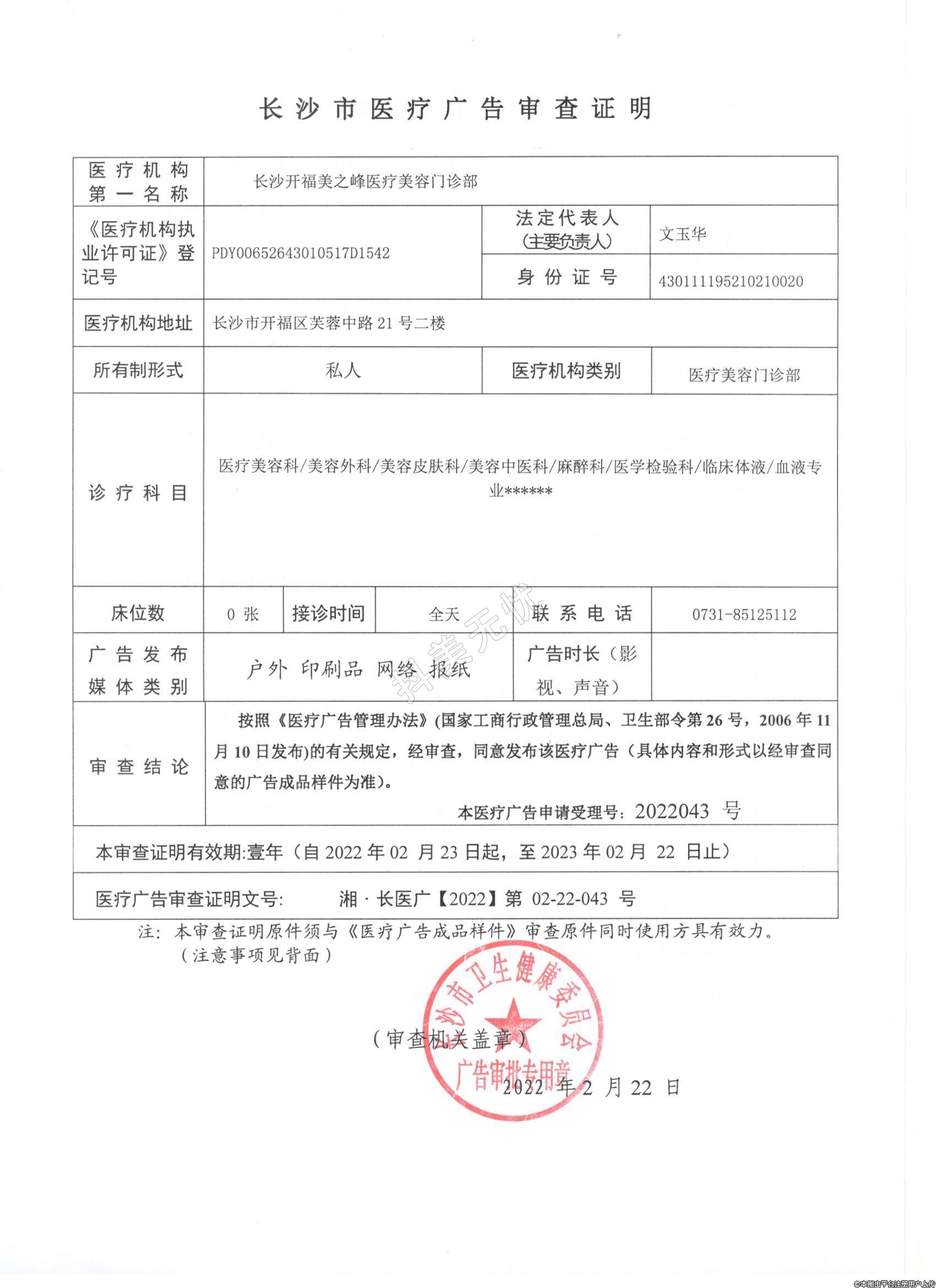 發(fā)證機(jī)關(guān):長(zhǎng)沙市開(kāi)福區(qū)衛(wèi)生健康局
