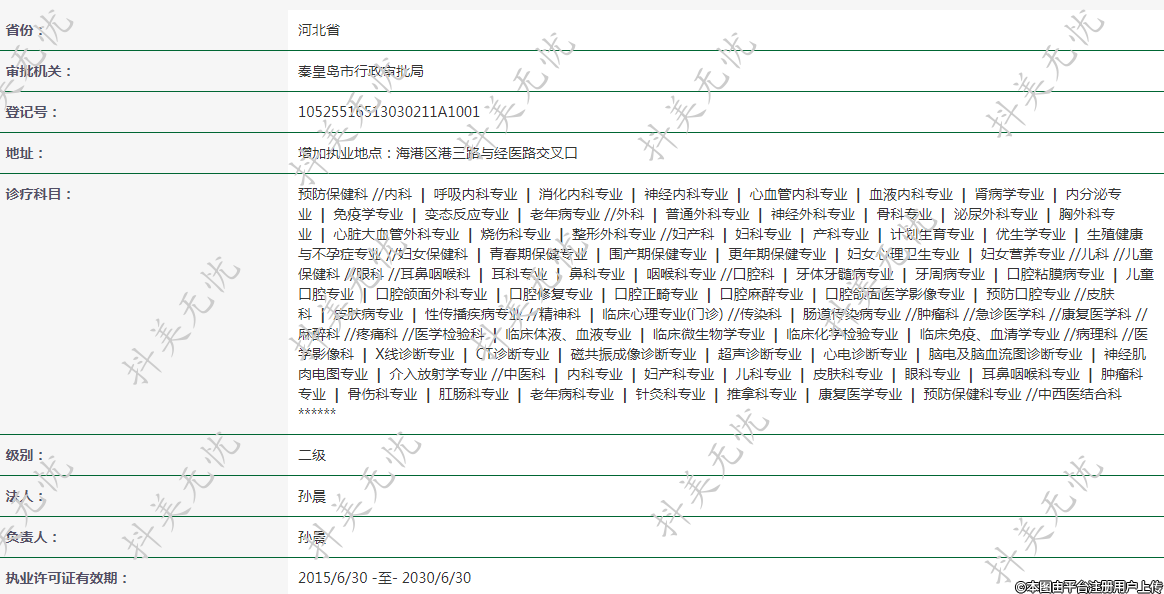 地址:增加執(zhí)業(yè)地點:海港區(qū)港三路與經(jīng)醫(yī)路交叉口