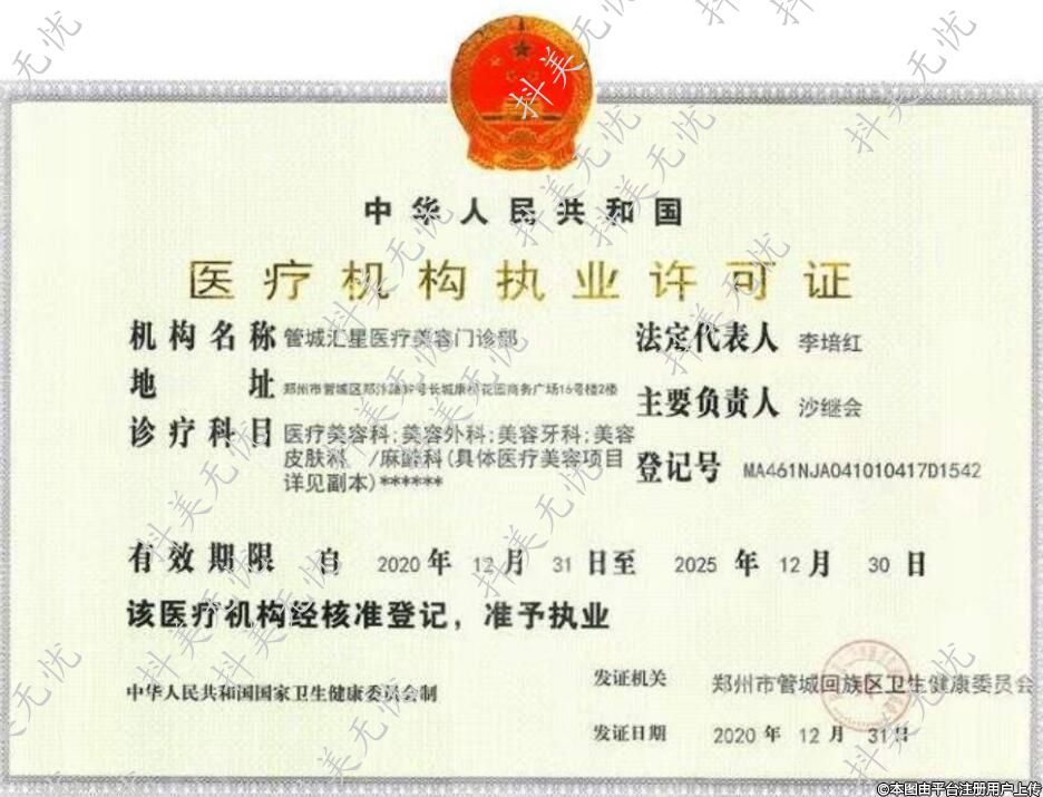 機(jī)構(gòu)名稱(chēng):管城匯星醫(yī)療美容門(mén)診部