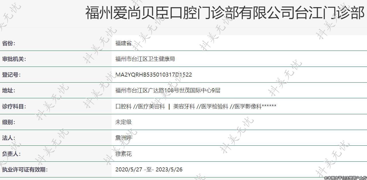 福州愛尚貝臣口腔門診部有限公司臺江門診部