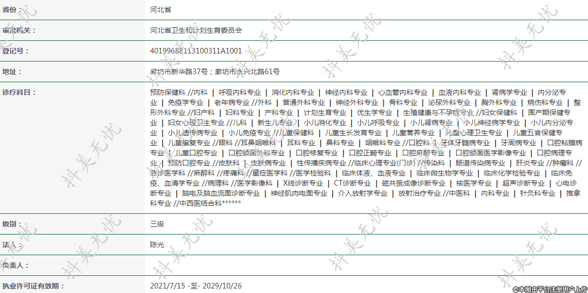 執(zhí)業(yè)許可證有效期:2021/7/15 -至- 2029/10/26