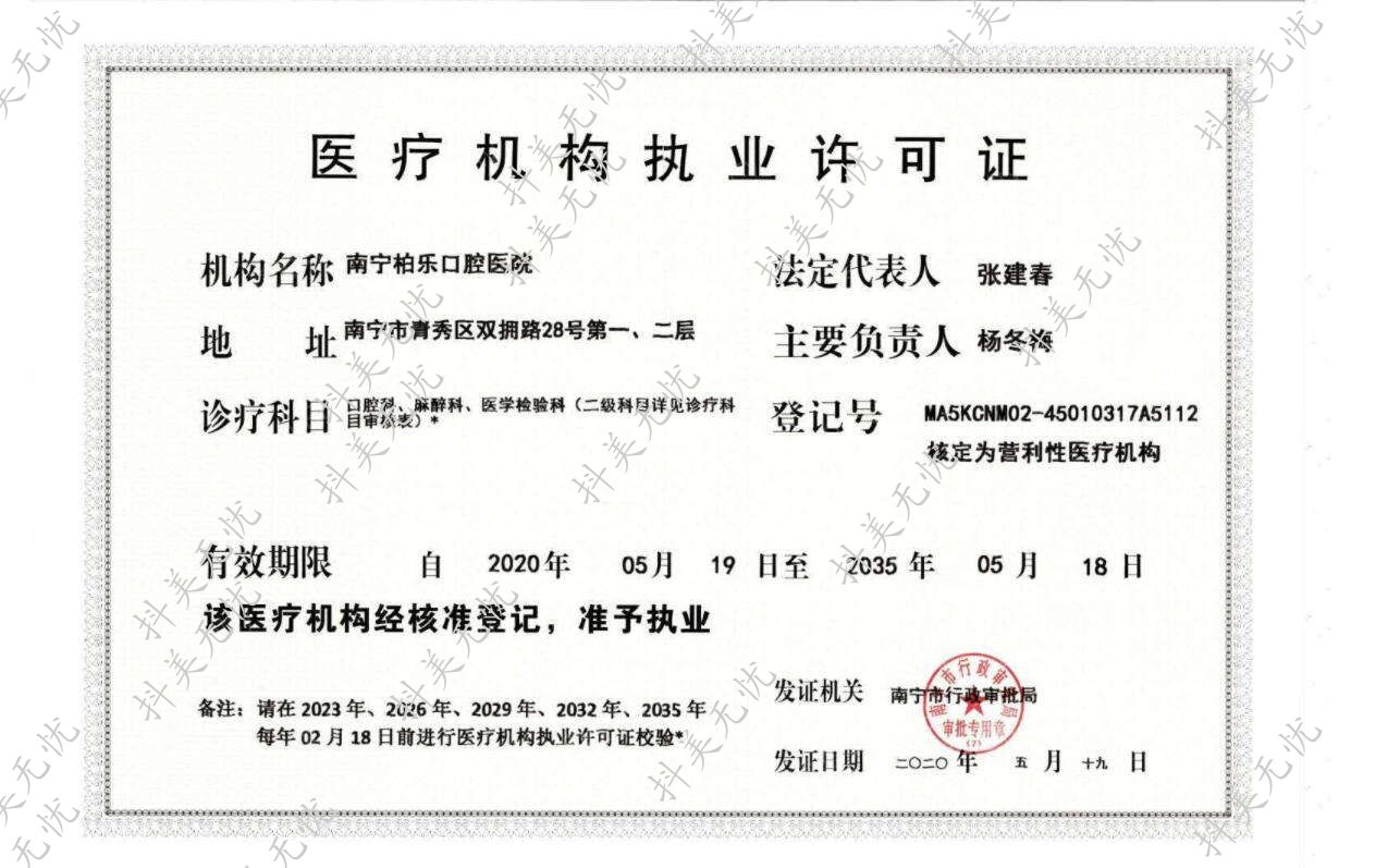 執(zhí)業(yè)許可證有效期:2020/5/19 -至- 2035/5/18