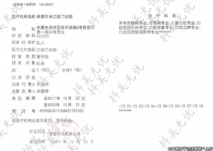 醫(yī)療機構(gòu)名稱:承德可米口腔門診部
