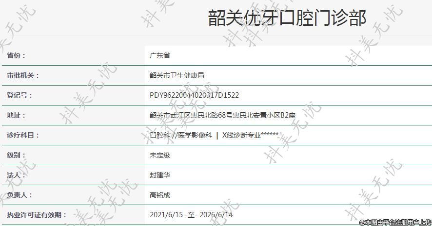 機(jī)構(gòu)名稱(chēng):韶關(guān)優(yōu)牙口腔門(mén)診部