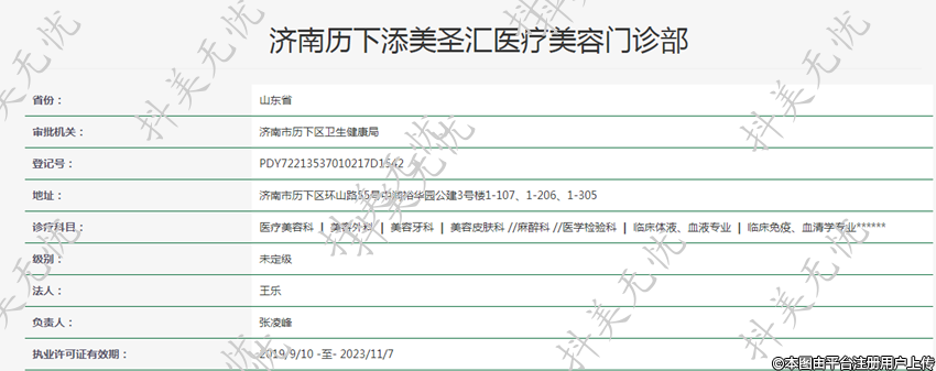 機構(gòu)名稱:濟南歷下添美圣匯醫(yī)療美容門診部