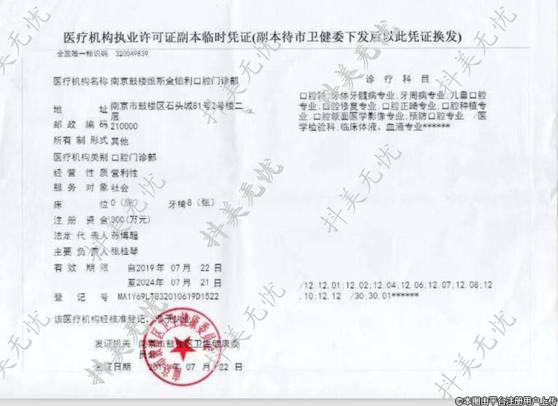 醫(yī)療機(jī)構(gòu)名稱:南京鼓樓維斯金鉑利口腔門診部