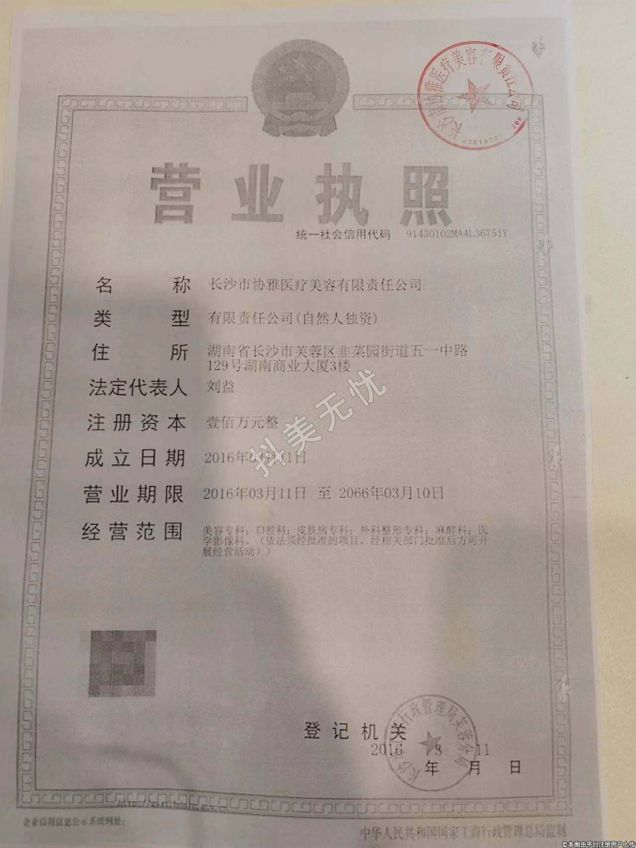 發(fā)證機關:長沙市芙蓉區(qū)行政審批局