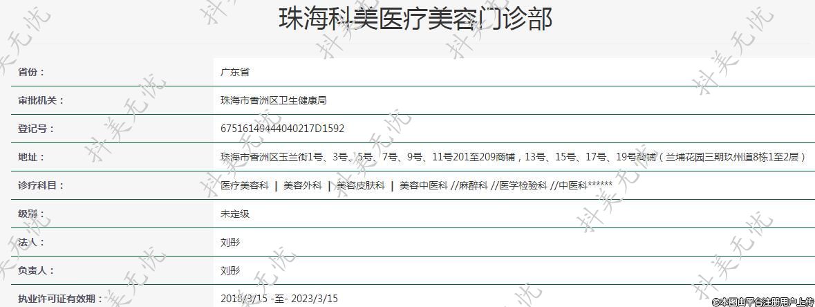 機(jī)構(gòu)名稱:珠海科美醫(yī)療美容門診部