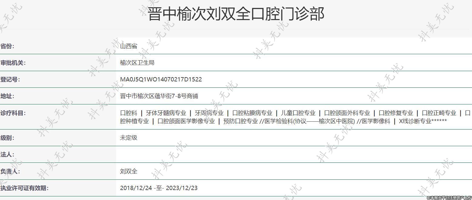 晉中榆次劉雙全口腔門診部