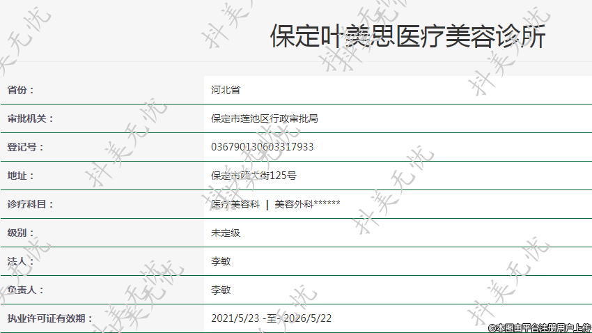 保定葉美思醫(yī)療美容診所成立于2016年8月,經(jīng)保定市蓮池區(qū)行政審批局審批通過的醫(yī)療機構(gòu)。