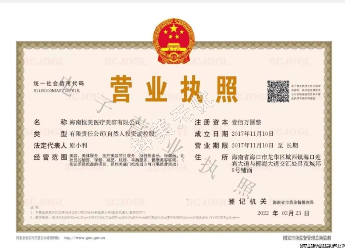 機(jī)構(gòu)名稱:海南恒美醫(yī)療美容有限公司龍華醫(yī)療美容門診部