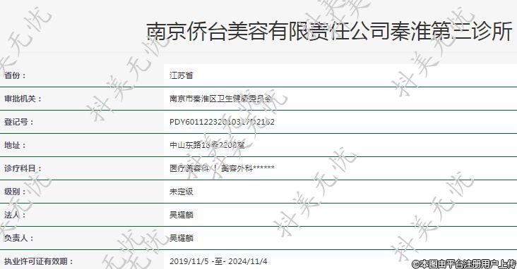 南京僑臺美容有限責(zé)任公司秦淮第三診所