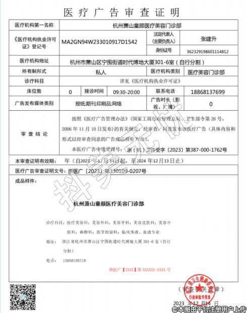 機構(gòu)名稱:杭州蕭山童顏醫(yī)療美容門診部
