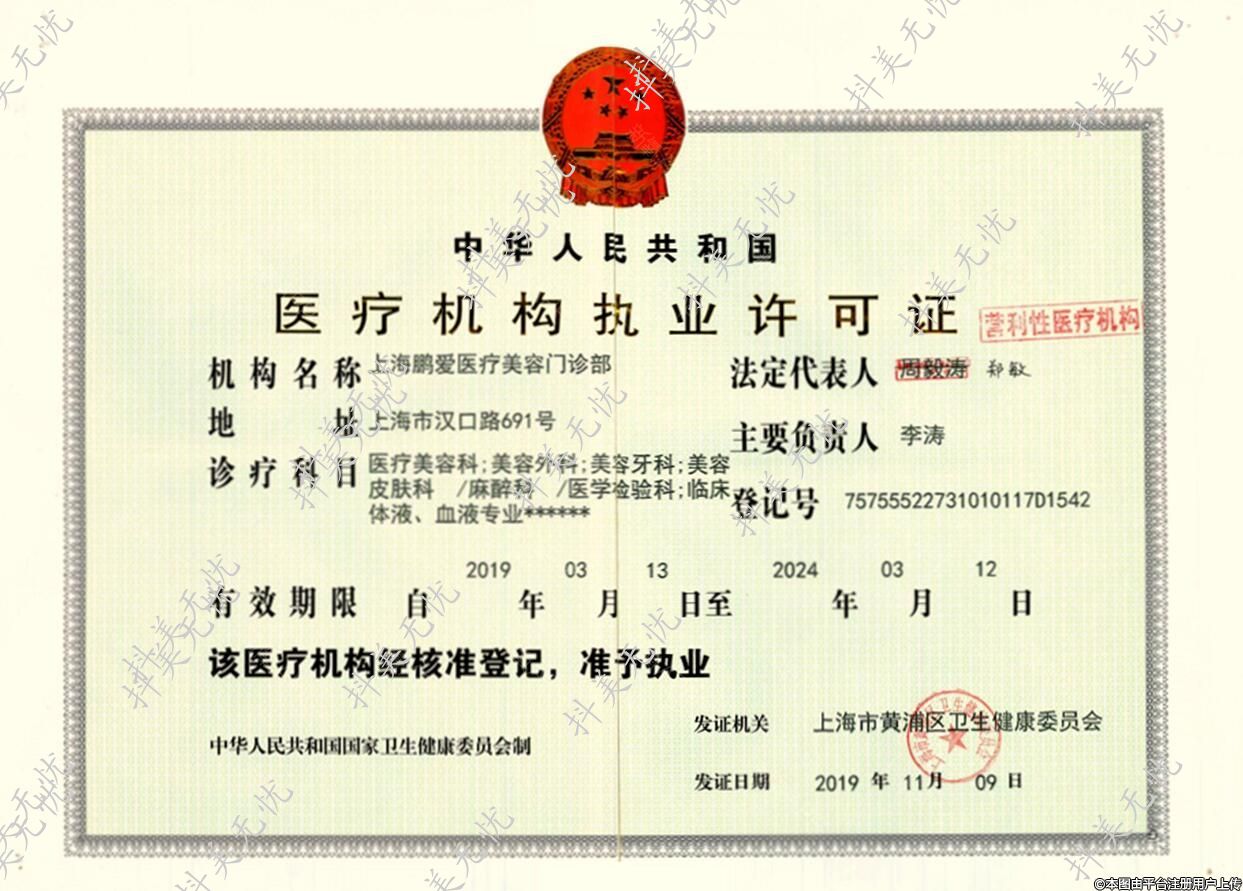 發(fā)證機關:上海市黃浦區(qū)衛(wèi)生健康委員會
