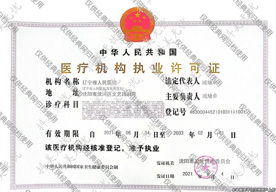 發(fā)證機(jī)關(guān):沈陽市衛(wèi)生健康委員會(huì)