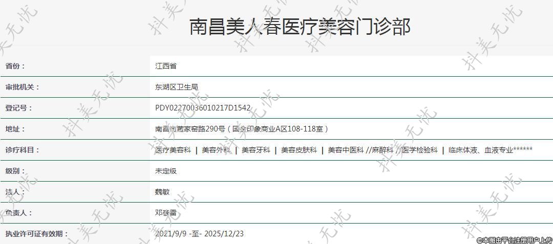 診療科目:醫(yī)療美容科|美容外科|美容牙科|美容皮膚科|美容中醫(yī)科/麻醉科/醫(yī)學(xué)檢驗科|臨床體液、血液專業(yè)******
