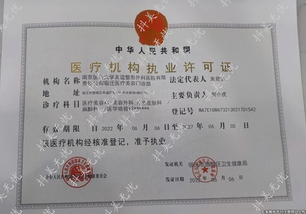 機構名稱:南京醫(yī)科大學友誼整形外科醫(yī)院有限公司宿遷醫(yī)療美容門診部