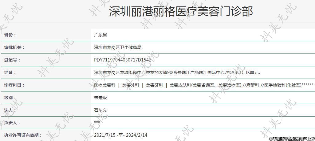 診療科目:醫(yī)療美容科|美容外科|美容牙科|美容皮膚科(美容咨詢室、美容治療室)/麻醉科/醫(yī)學(xué)檢驗(yàn)科(化驗(yàn)室)******
