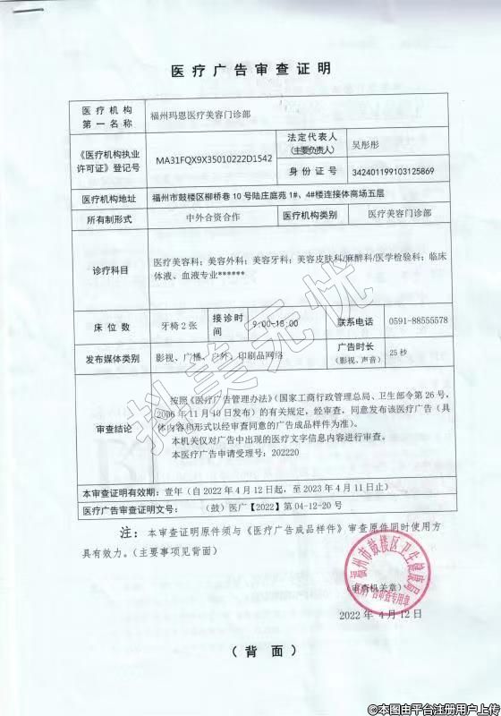 機構(gòu)名稱:福州瑪恩醫(yī)療美容門診部