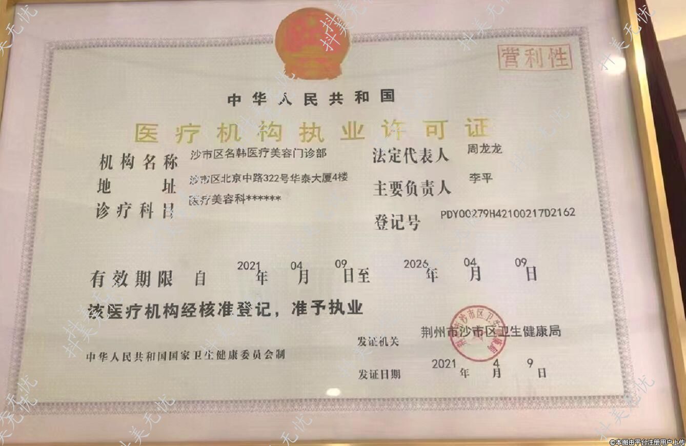 機(jī)構(gòu)名稱:沙市區(qū)名韓醫(yī)療美容門診部