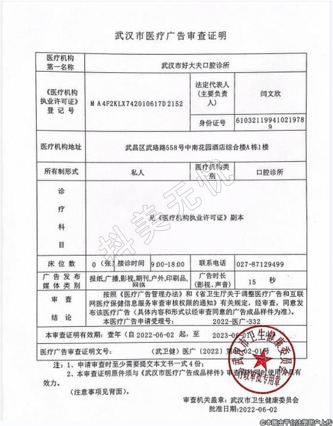 機構(gòu)名稱:武漢市好大夫口腔診所(備案)