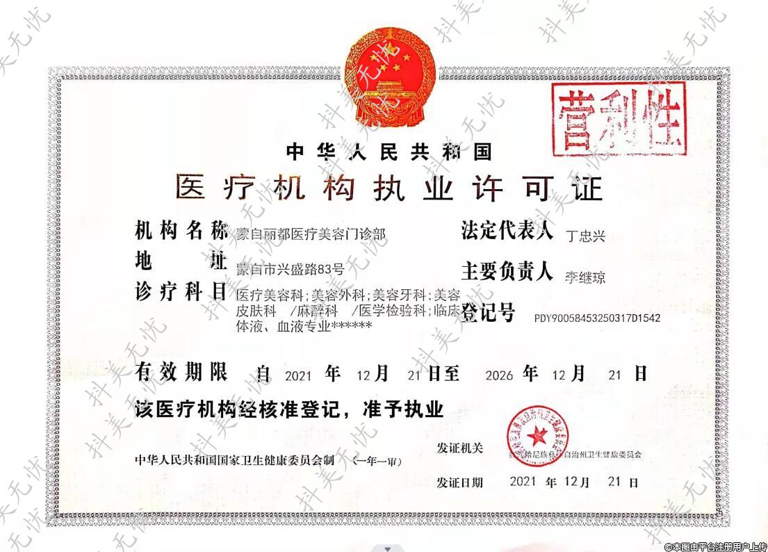 機構名稱:蒙自麗都醫(yī)療美容門診部