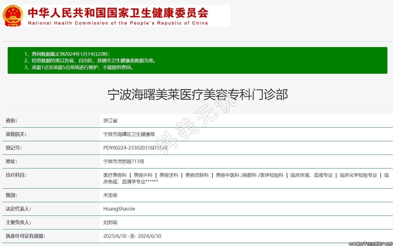 審批機關:寧波市海曙區(qū)衛(wèi)生健康局