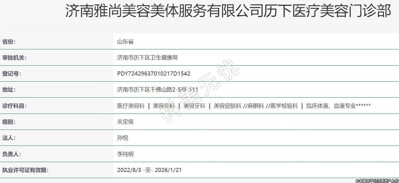濟(jì)南雅尚美容美體服務(wù)有限公司歷下醫(yī)療美容門診部