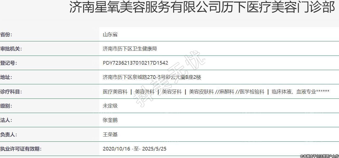 濟(jì)南星氧美容服務(wù)有限公司歷下醫(yī)療美容門診部
