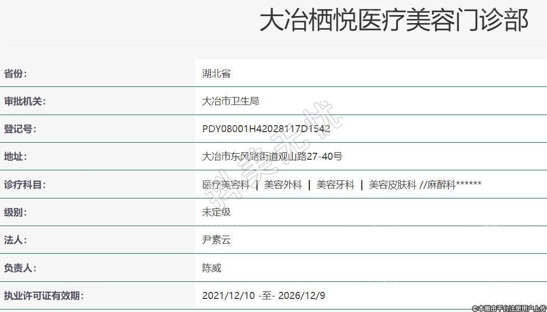 大冶棲悅醫(yī)療美容成立于2021-07-12,地址:大冶市東風路街道觀山路27-40號,診療科目:醫(yī)療美容科 | 美容外科 | 美容牙科 | 美容皮膚科 //麻醉科******